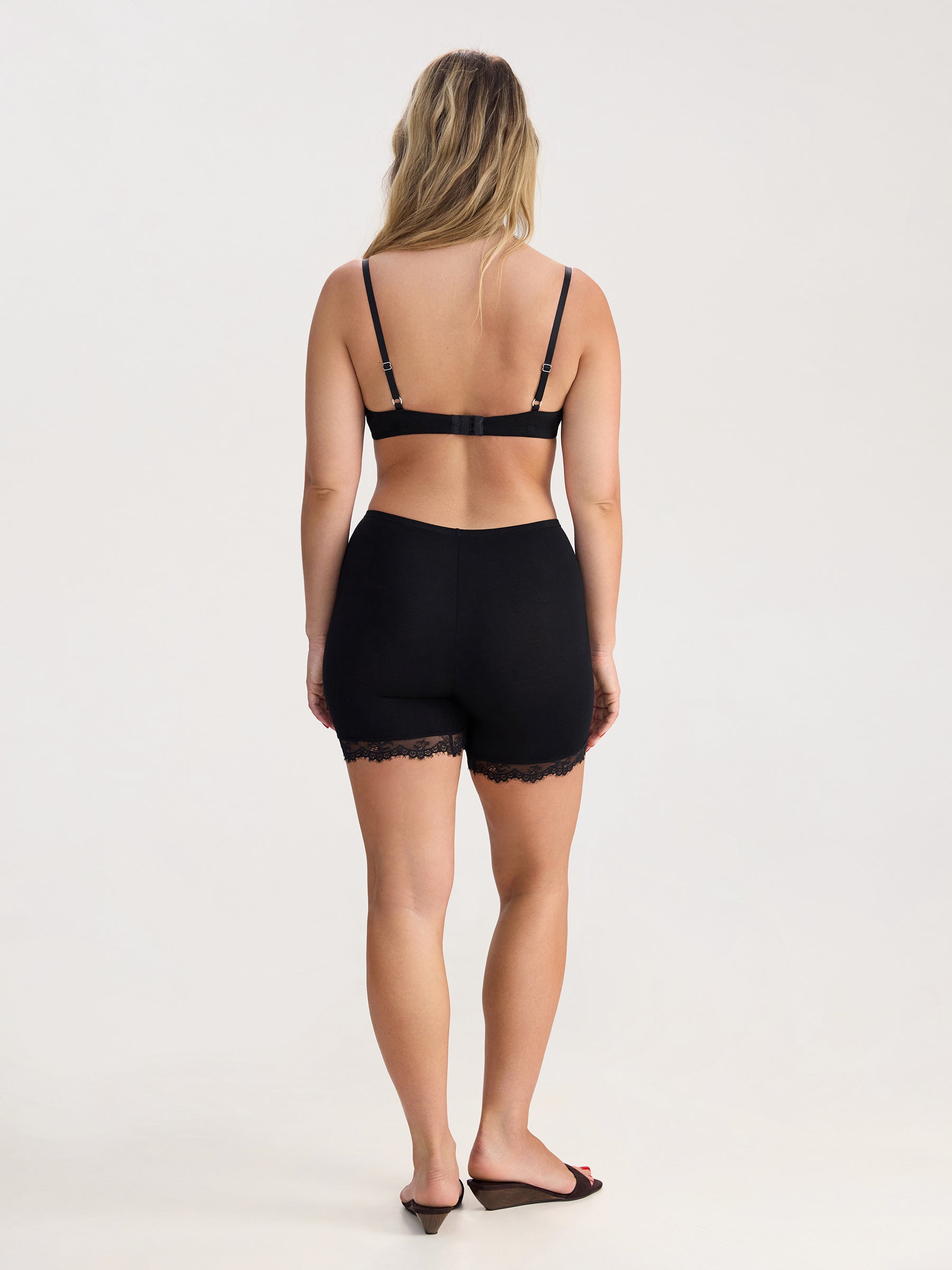 Schwarze Shorts im Vintage-Stil mit Spitze.
