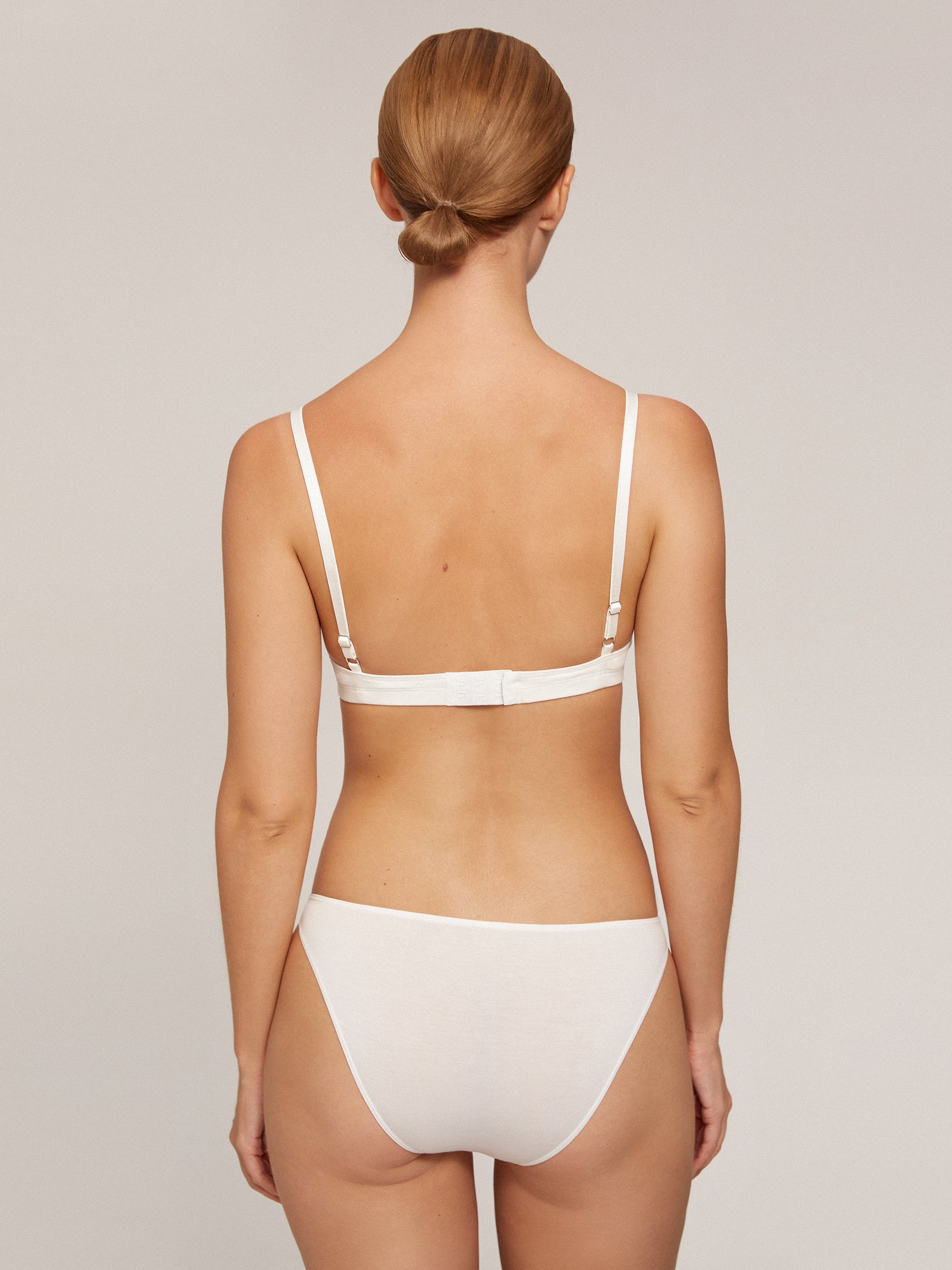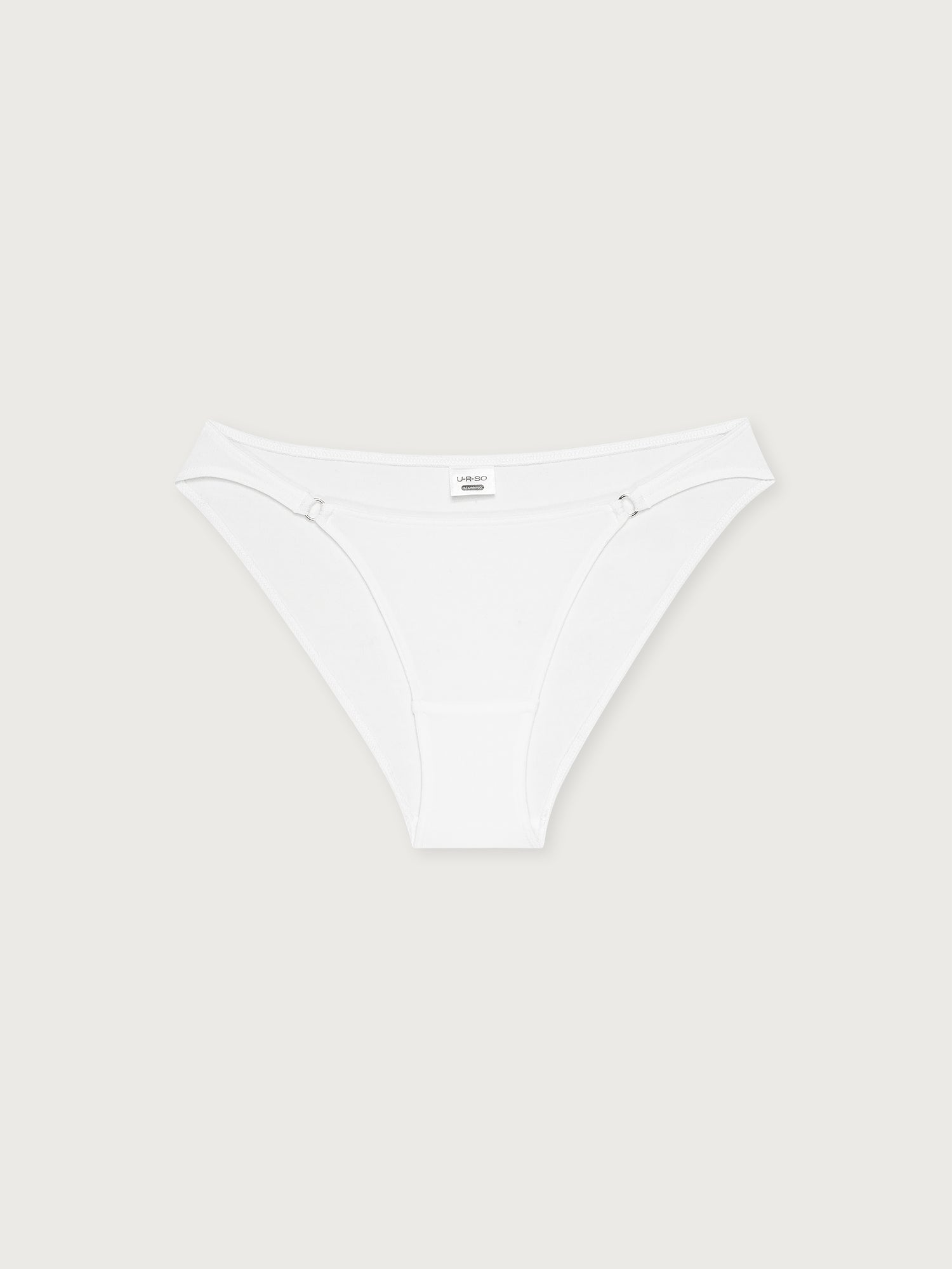 Weiße Bikinis mit silberfarbenen Metallringen sind verführerisch, elegant und bequem zugleich.