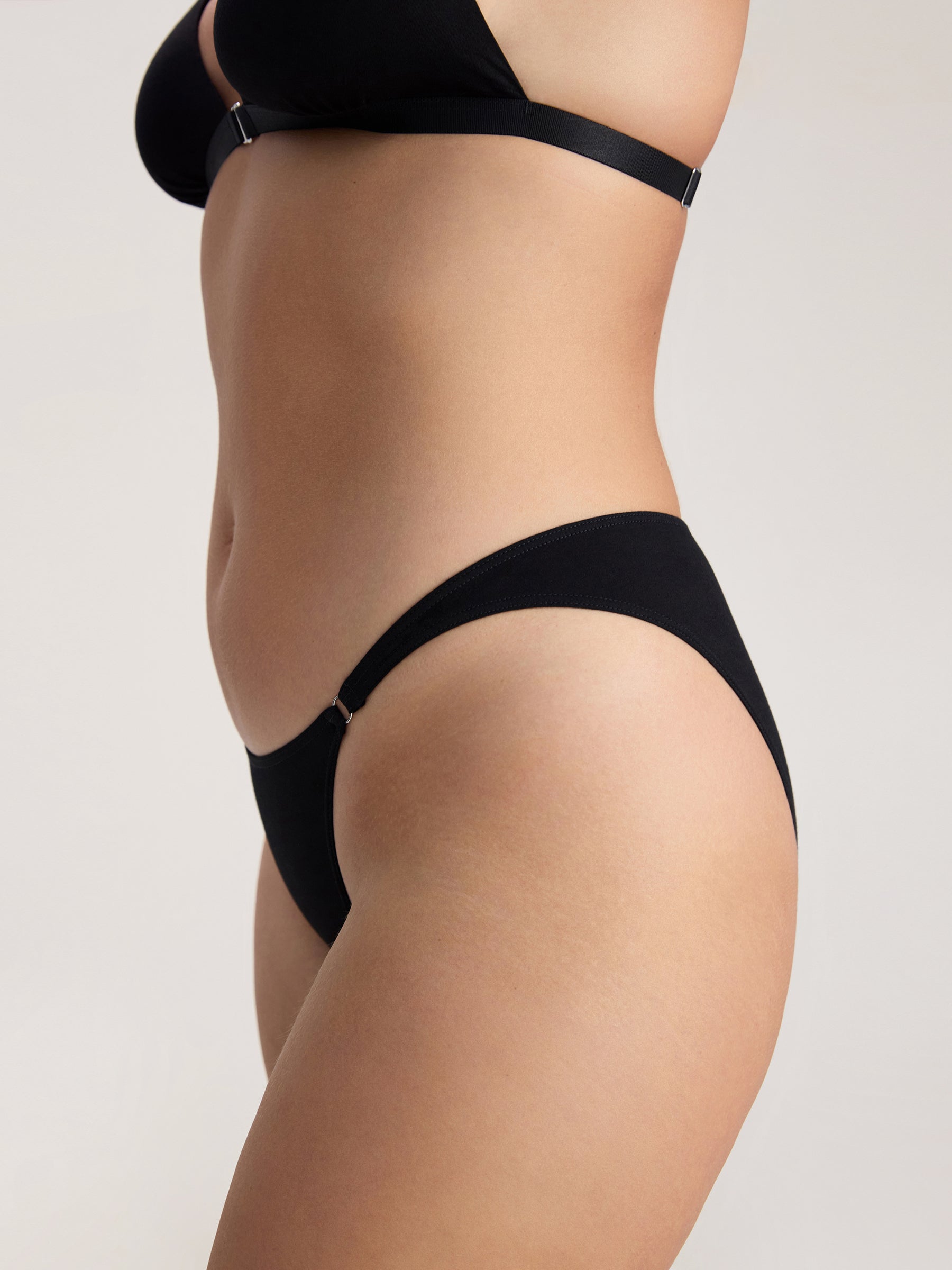 The special bikini with silver rings is attractive and comfortable at the same time.
