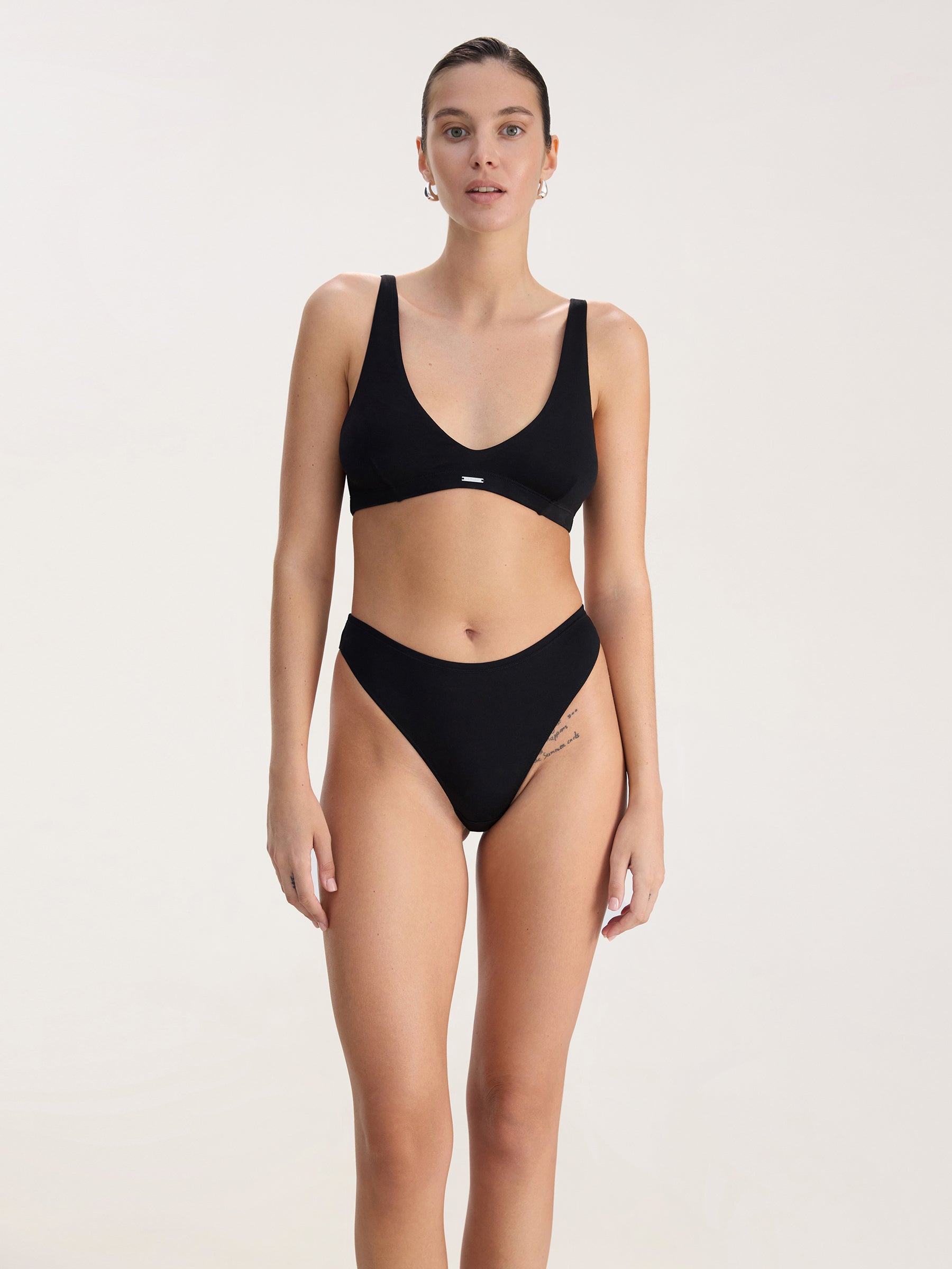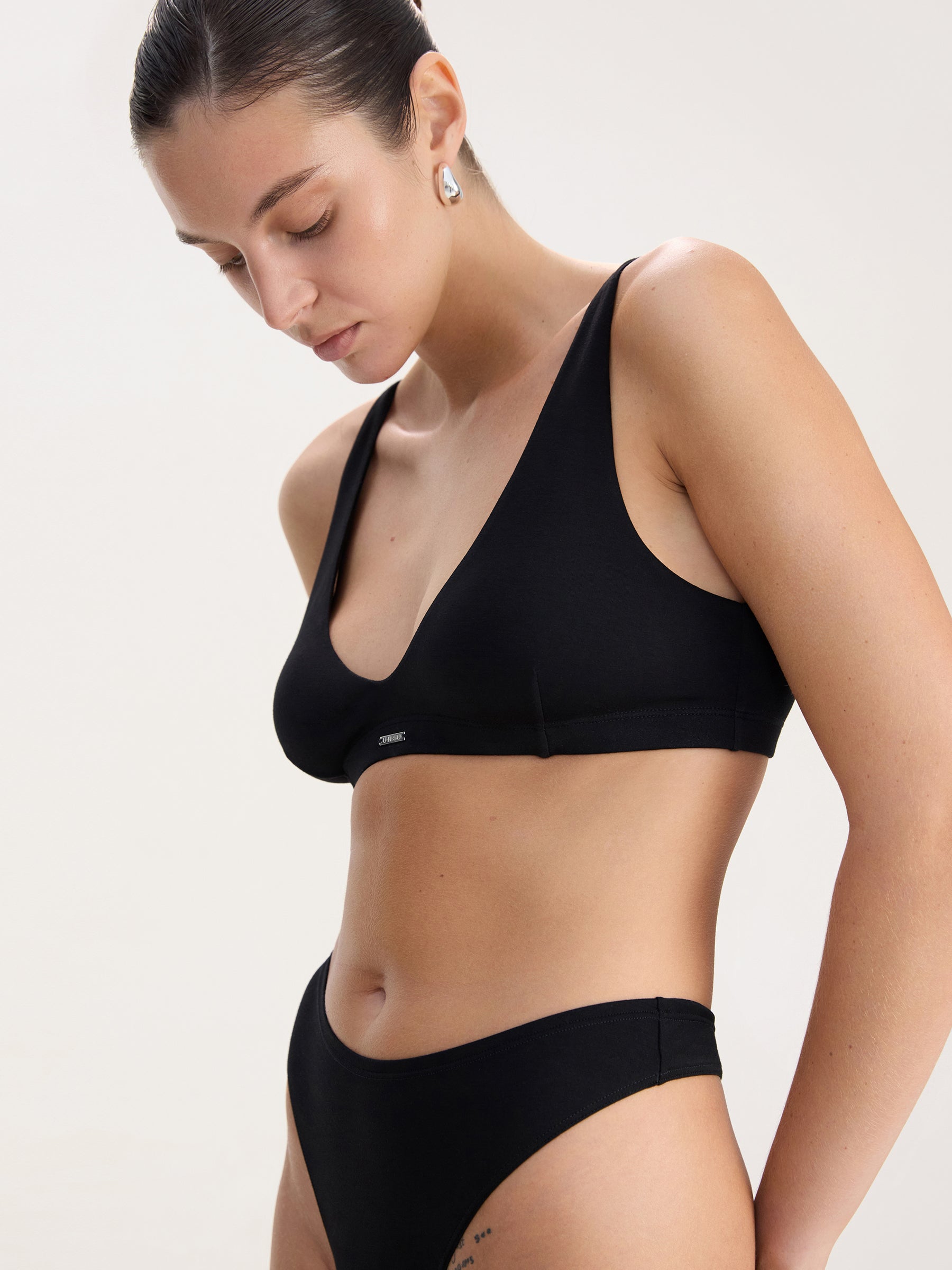An improved version of the best-selling U-R-SO bralette. A distinctive neckline, double layer of fabric, and silver-colored metal hook on the striking back. Non-adjustable.