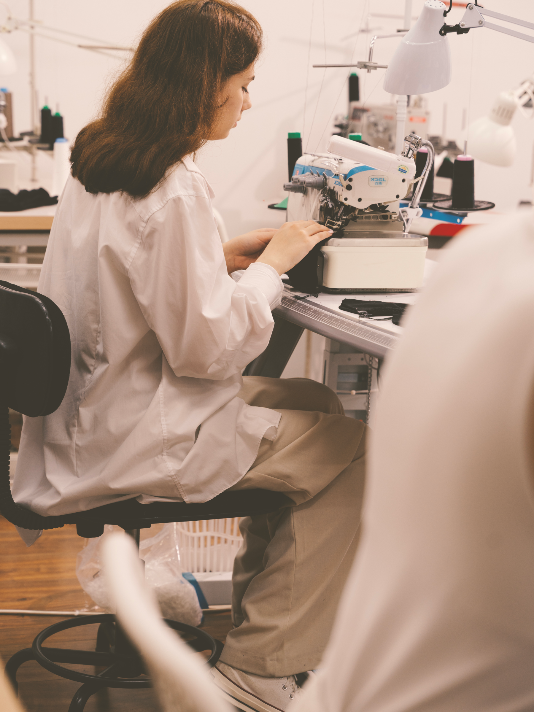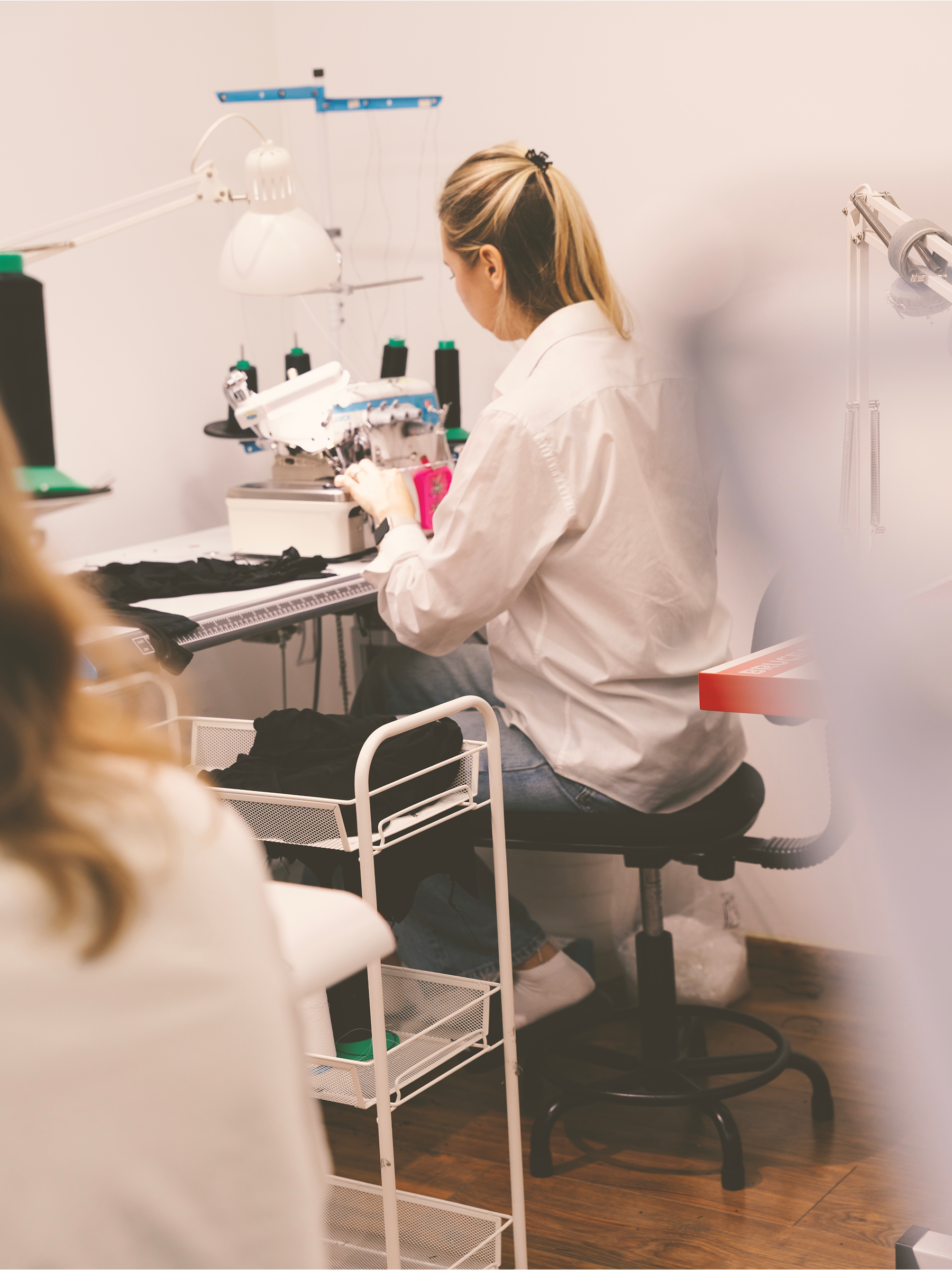 A light-filled studio, modern equipment for the most delicate seams, transparency, and decent working conditions.