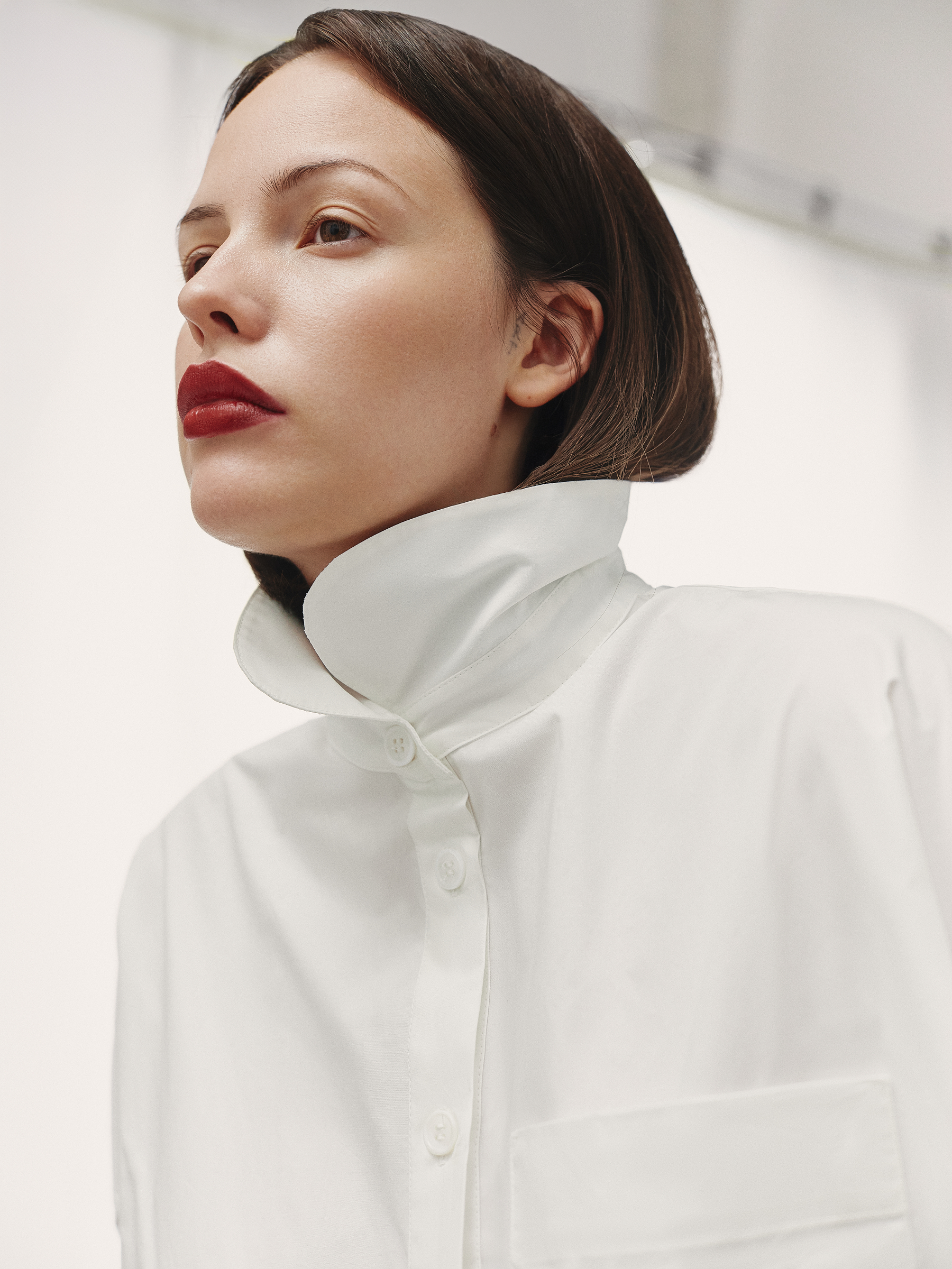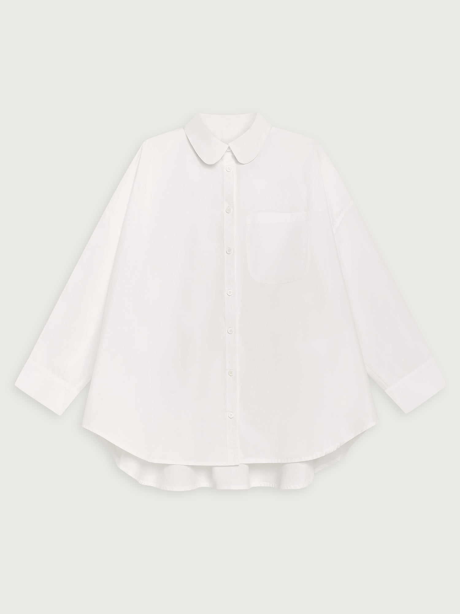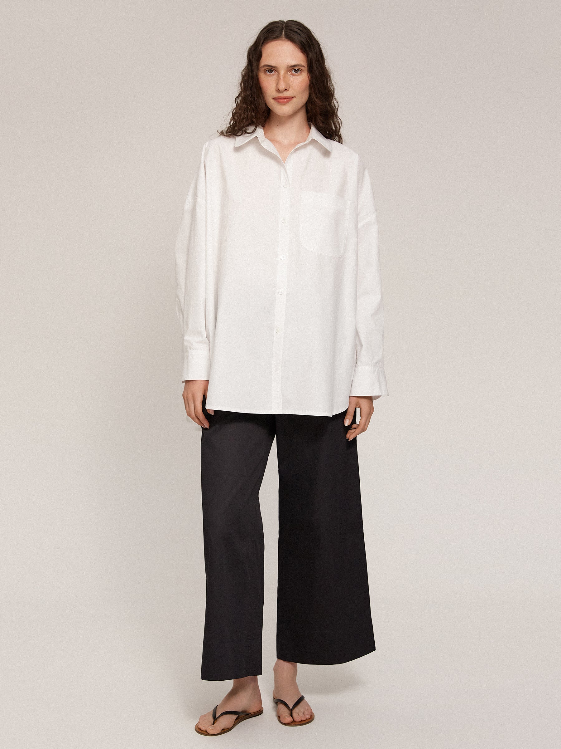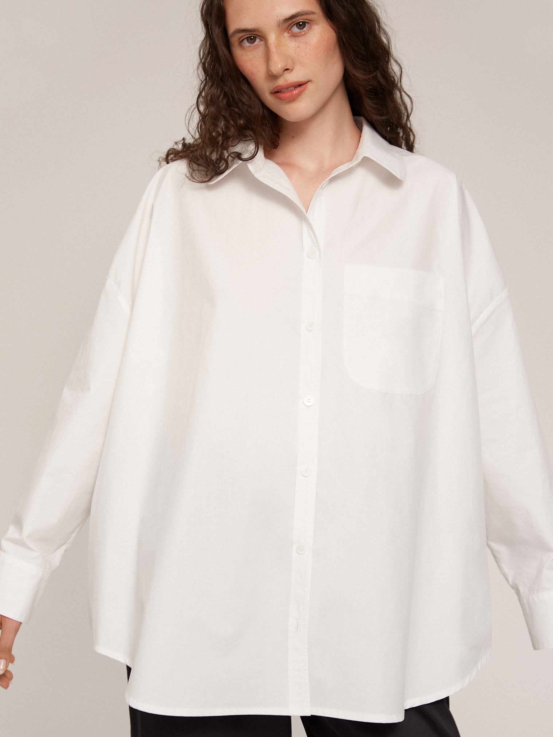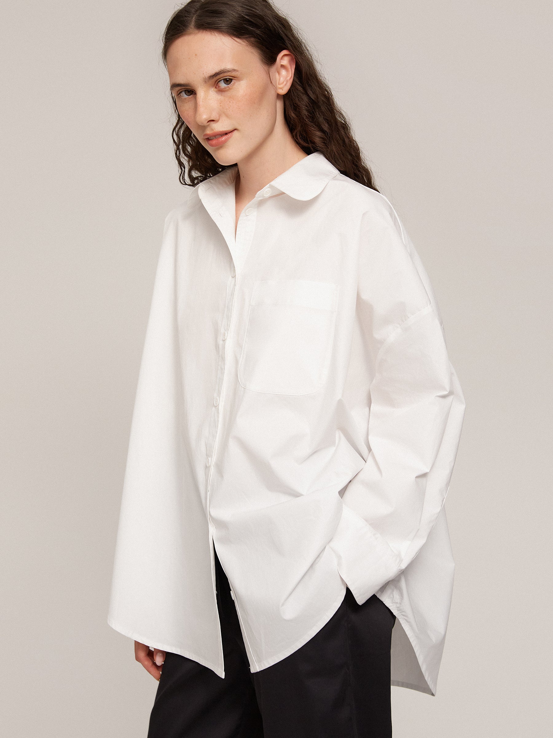 A loose-fit shirt made of dense cotton that holds its shape well. Relaxed oversized silhouette, wide adjustable cuffs, and chest pocket.